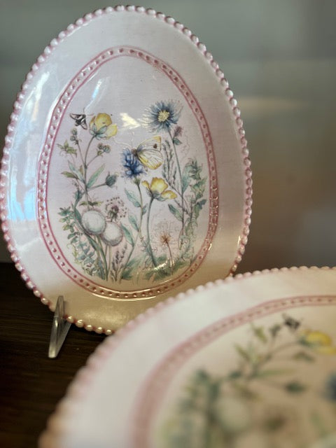 Pottery Barn Pink Botanical Egg plates, set of 4