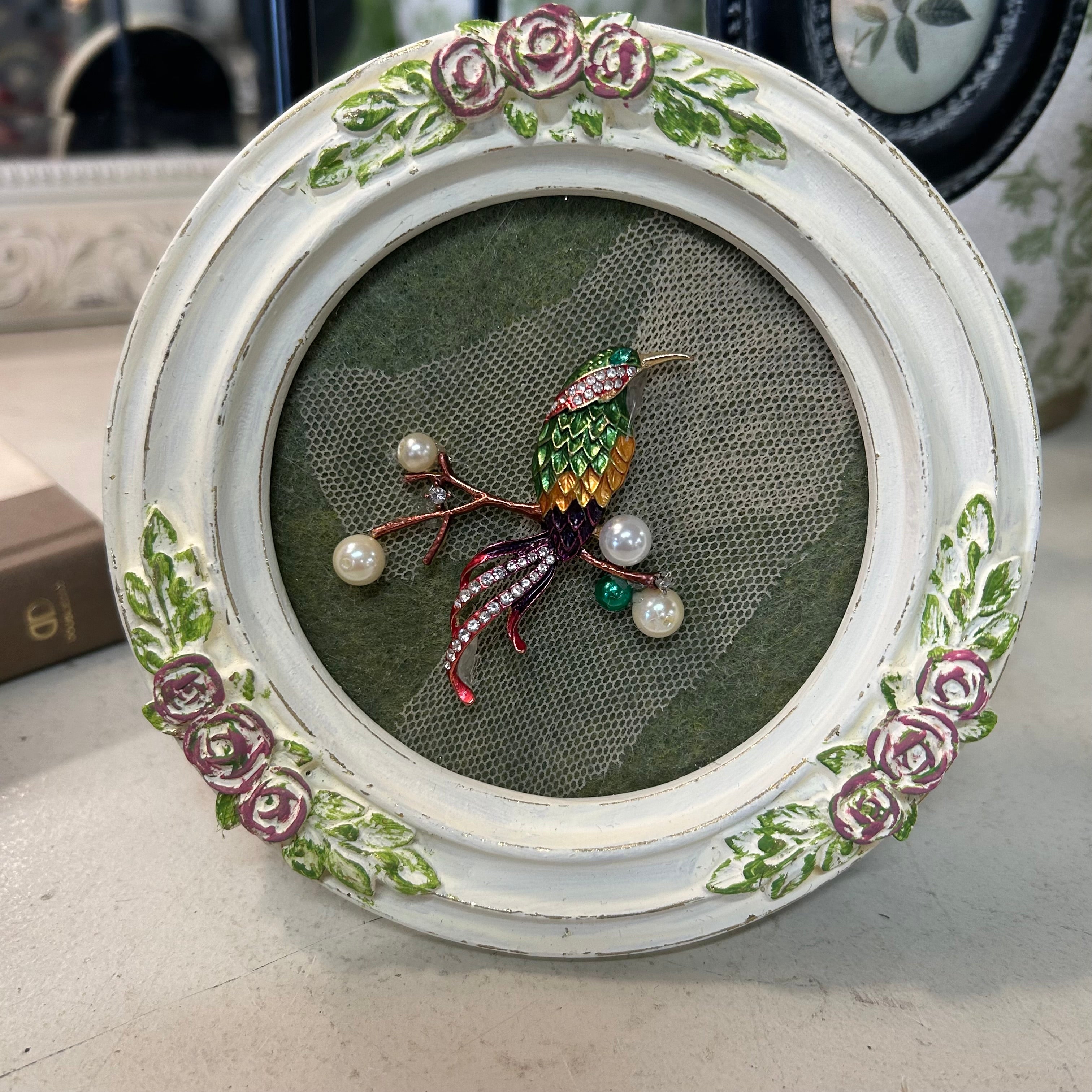 Hummingbird Rhinestone Art in Painted frame