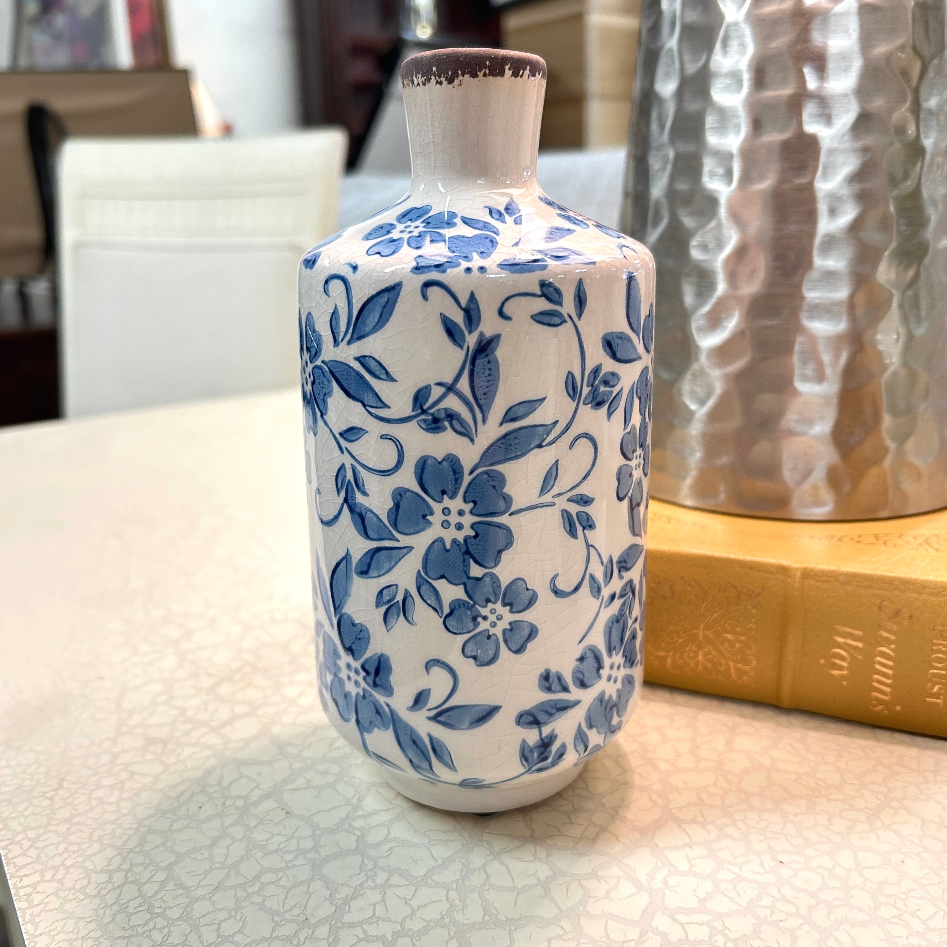 NEW Blue & White Ceramic Floral Vase