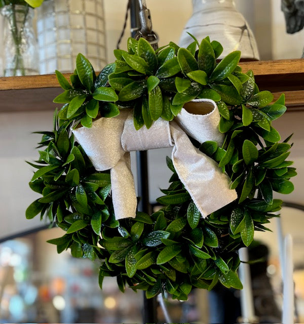 Green Wreath w velvet bow