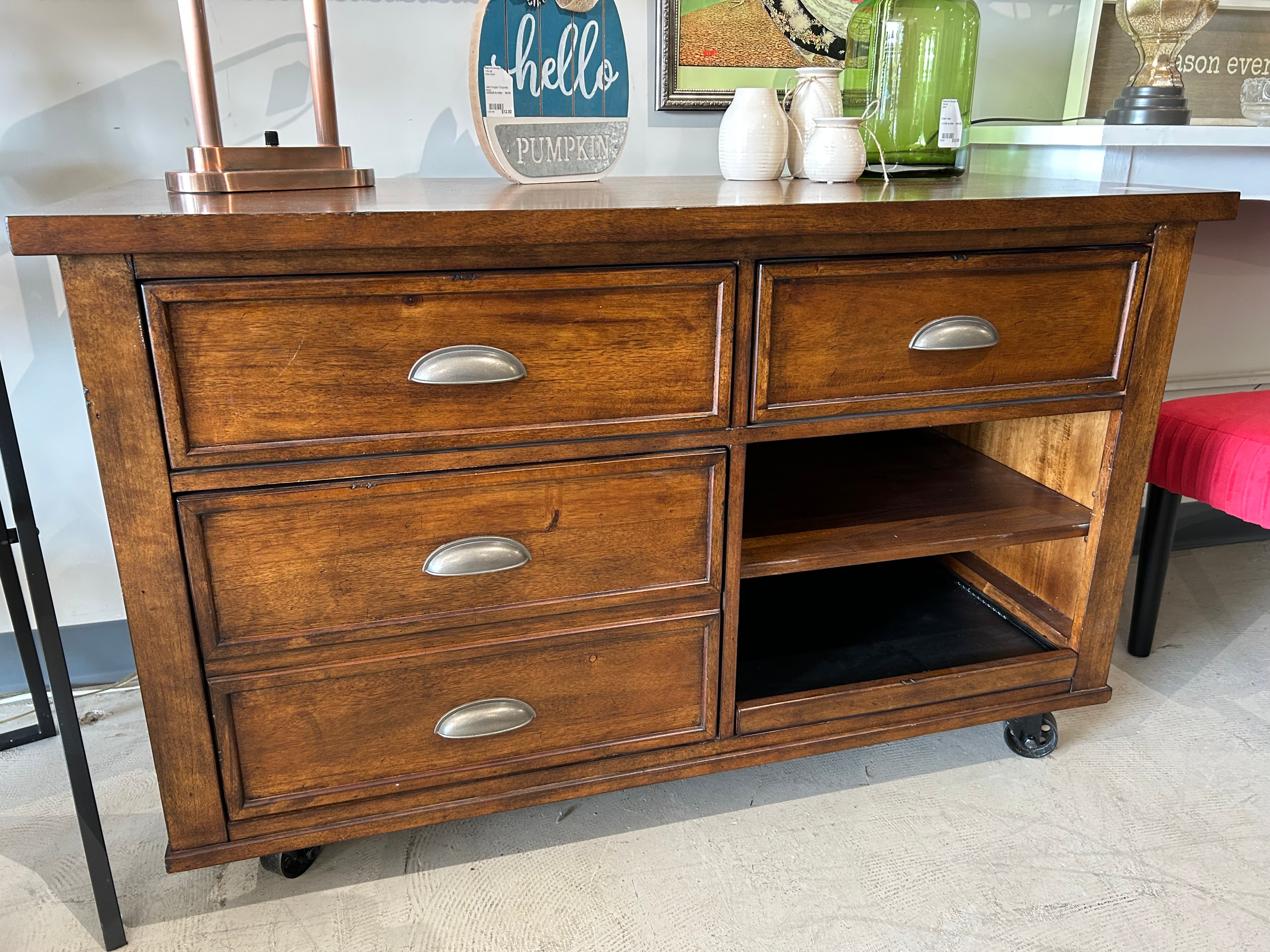 Solid Wood Cabinet on Wheels, 48"W X 22"D X 30"H
