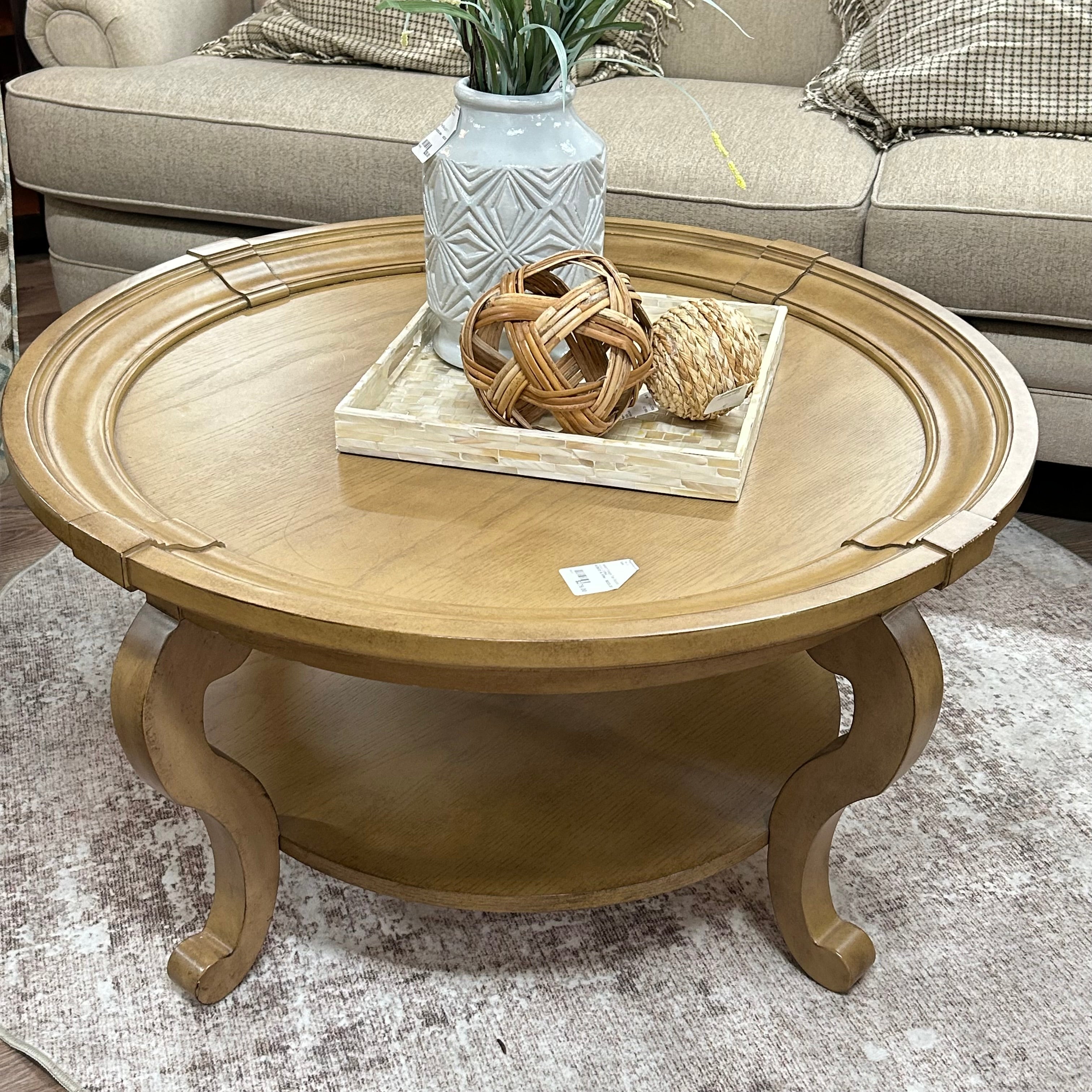 Ballard Design Tan Round Wood Coffee Table