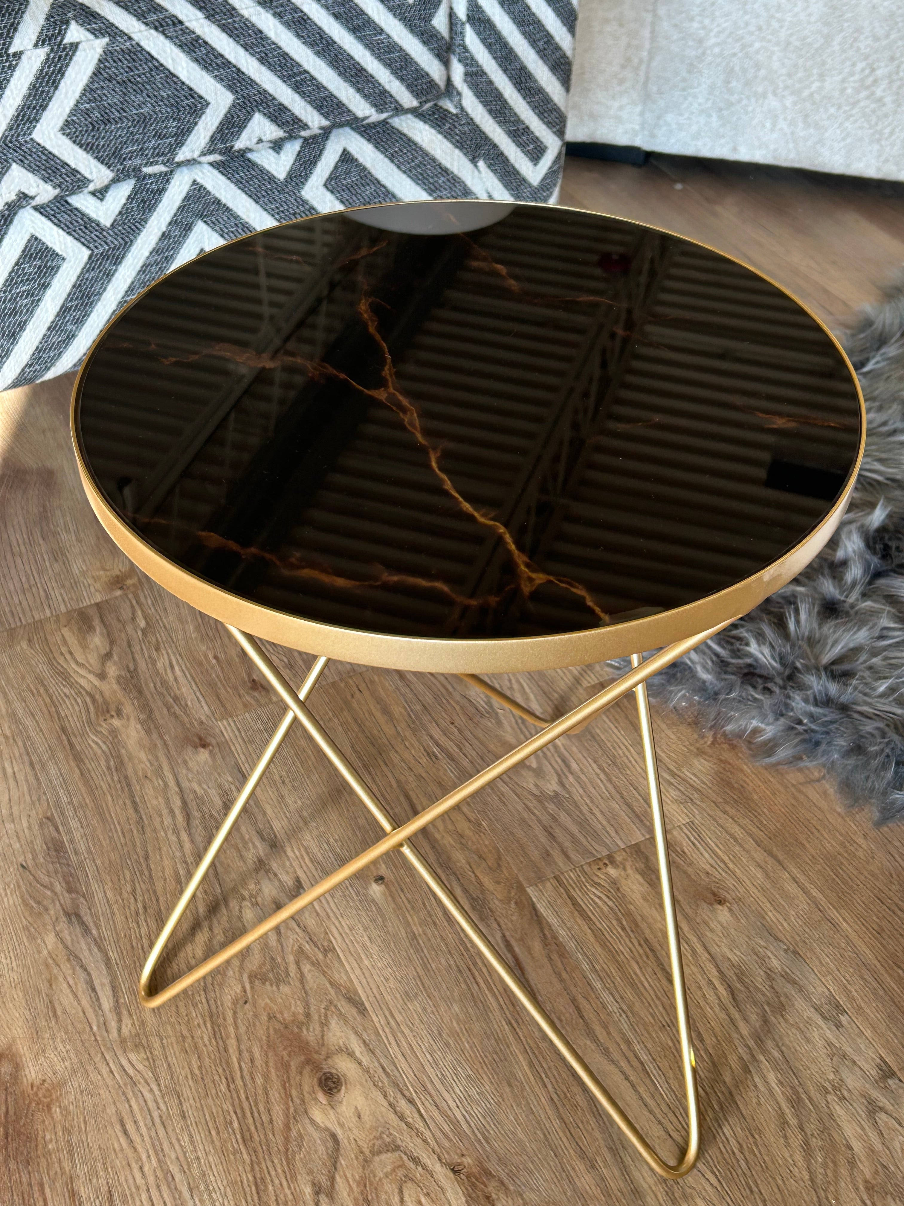Gold Accent table w black marble